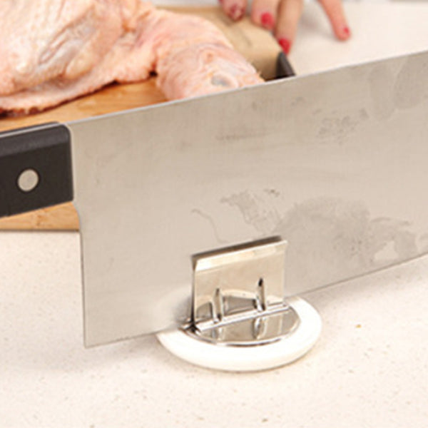 Simple protector that is used as a pressing tool for knives. Useful when cutting hard food ingredients.